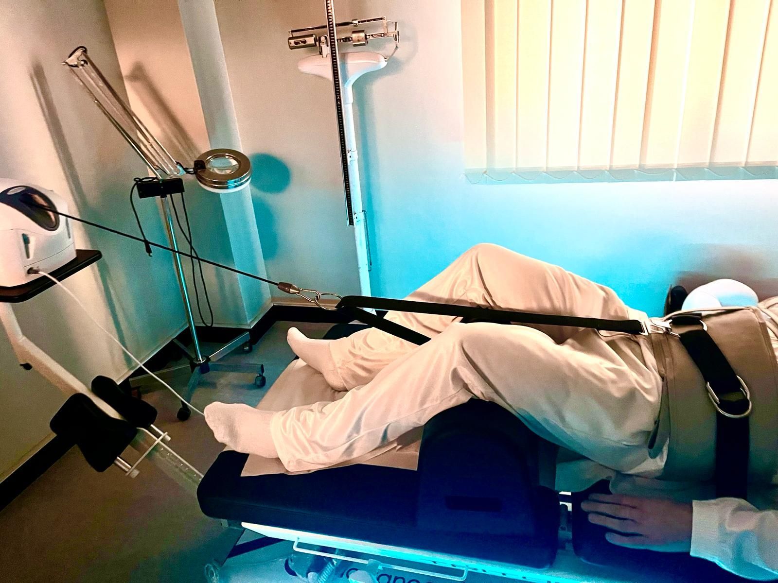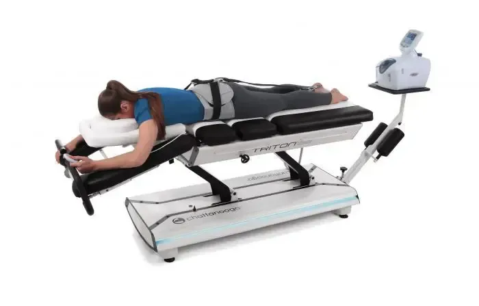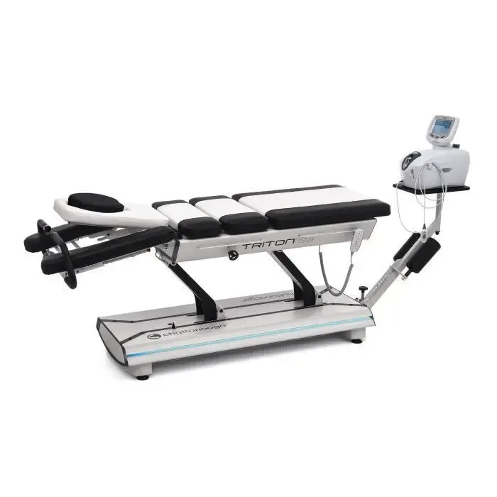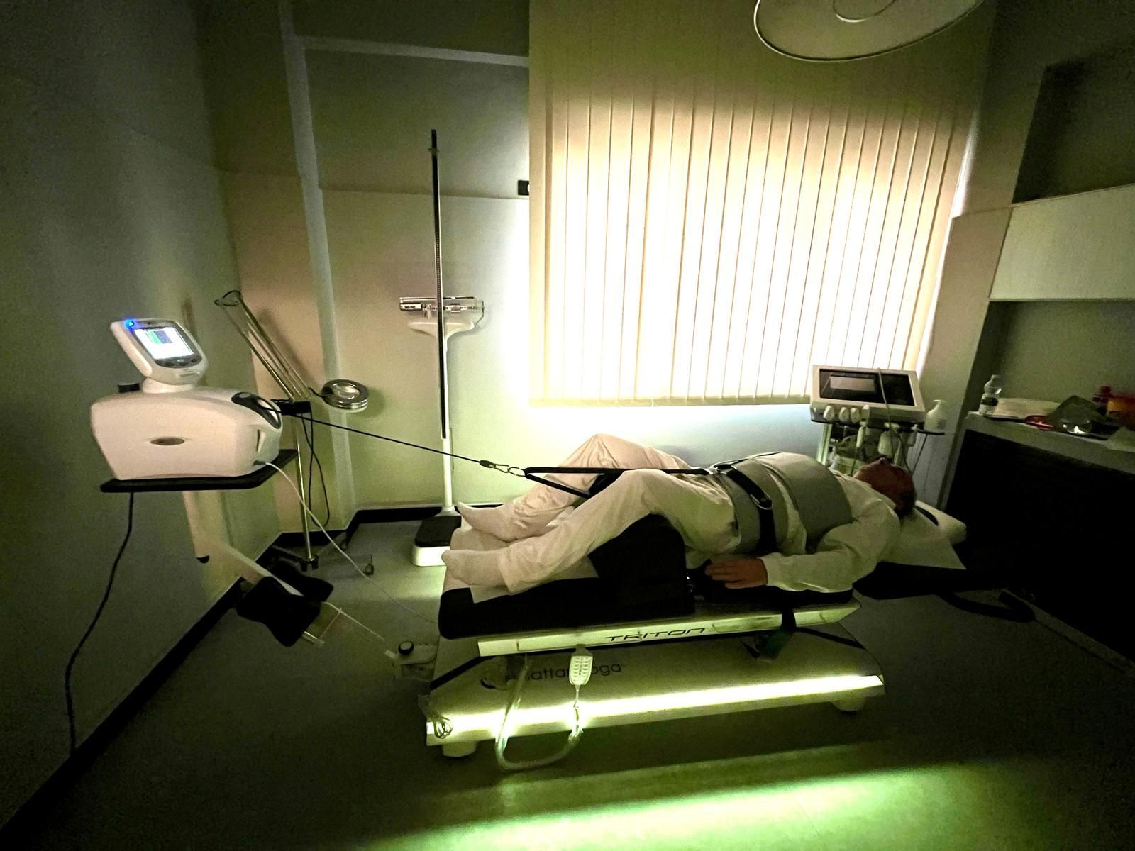 Presso il nostro studio usiamo il Lettino Triton 6E top di gamma, uno dei più avanzati tavoli a trazione elettrica, azionato da moderni attuatori che assiste nel movimento senza attrito delle sezioni della testa, del bacino, del torace e delle gambe.